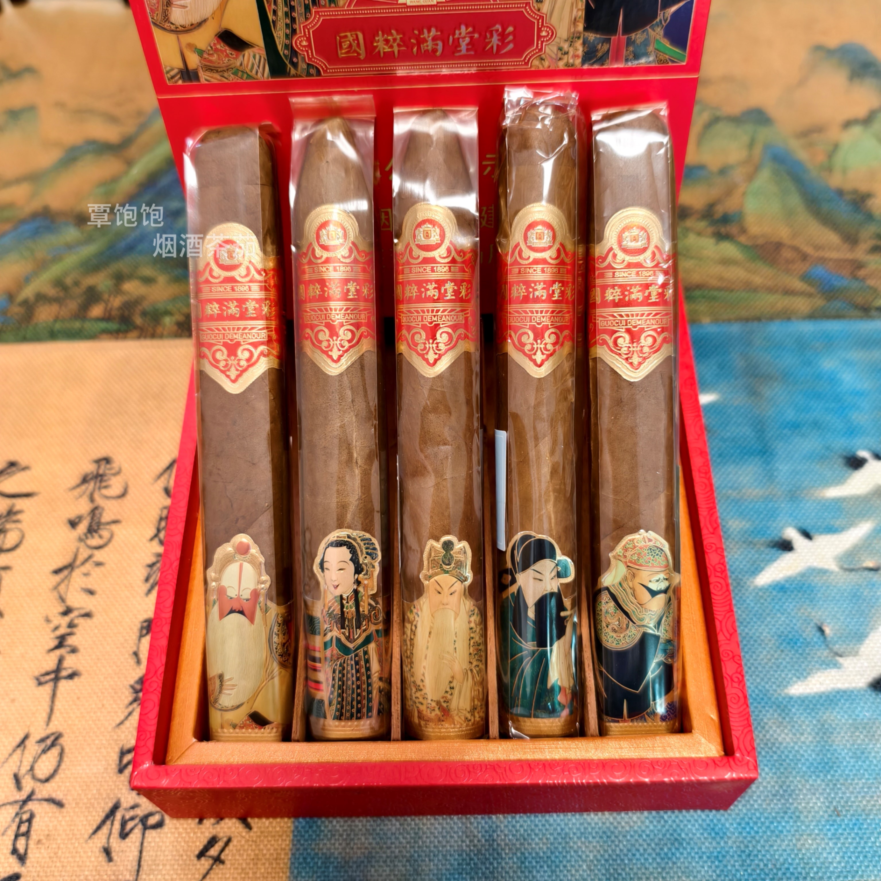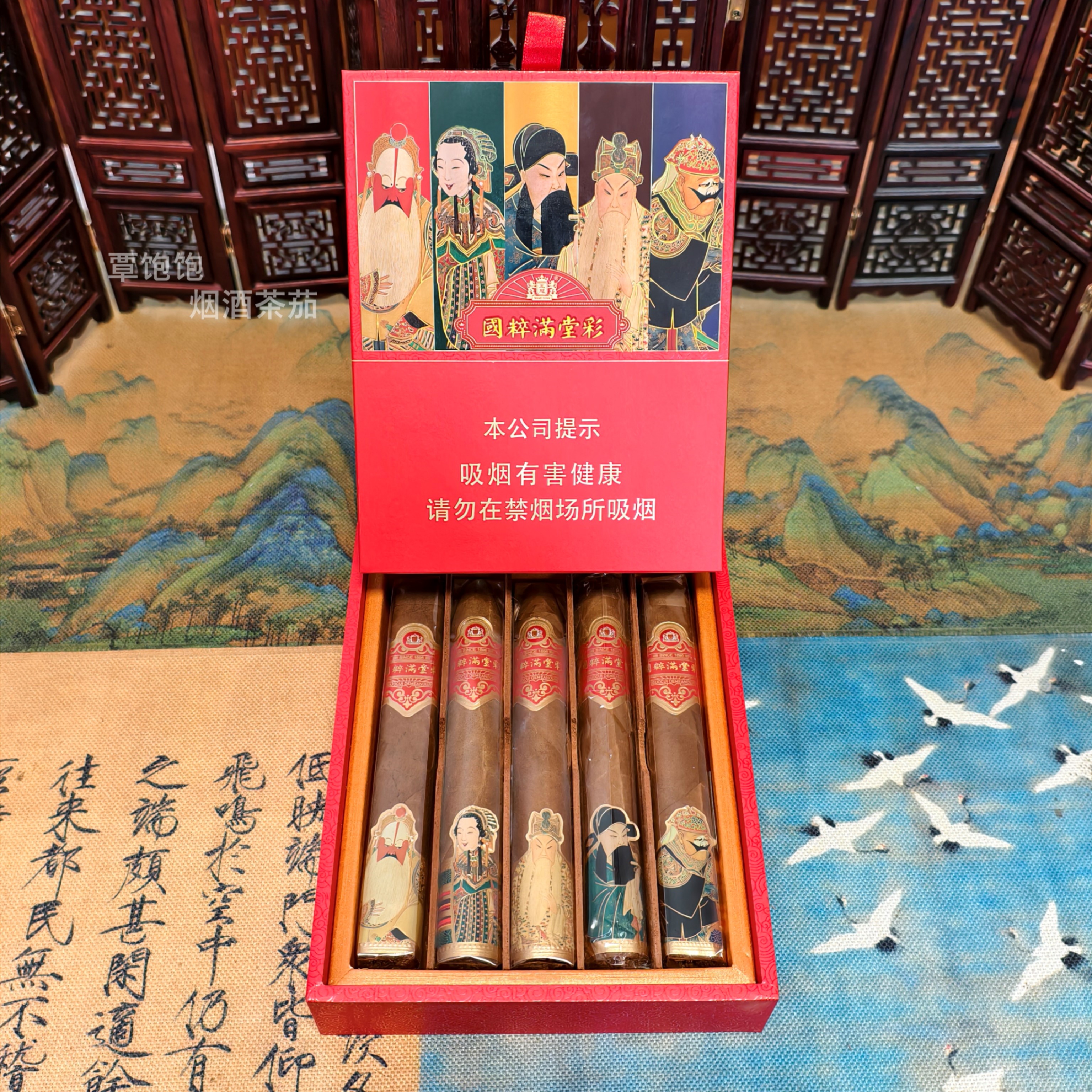 王冠 • 国粹满堂彩雪茄(全叶手卷),三型混合礼盒型,送礼、自品、新手入门皆宜 长度:156mm 环径:鱼雷-54 盒压-50 公牛-50 鱼雷:青草蜂蜜 盒压:坚果木香 公牛:皮革咖啡 一盒在手,可尝3型雪茄,性价高,新手试茄好物
