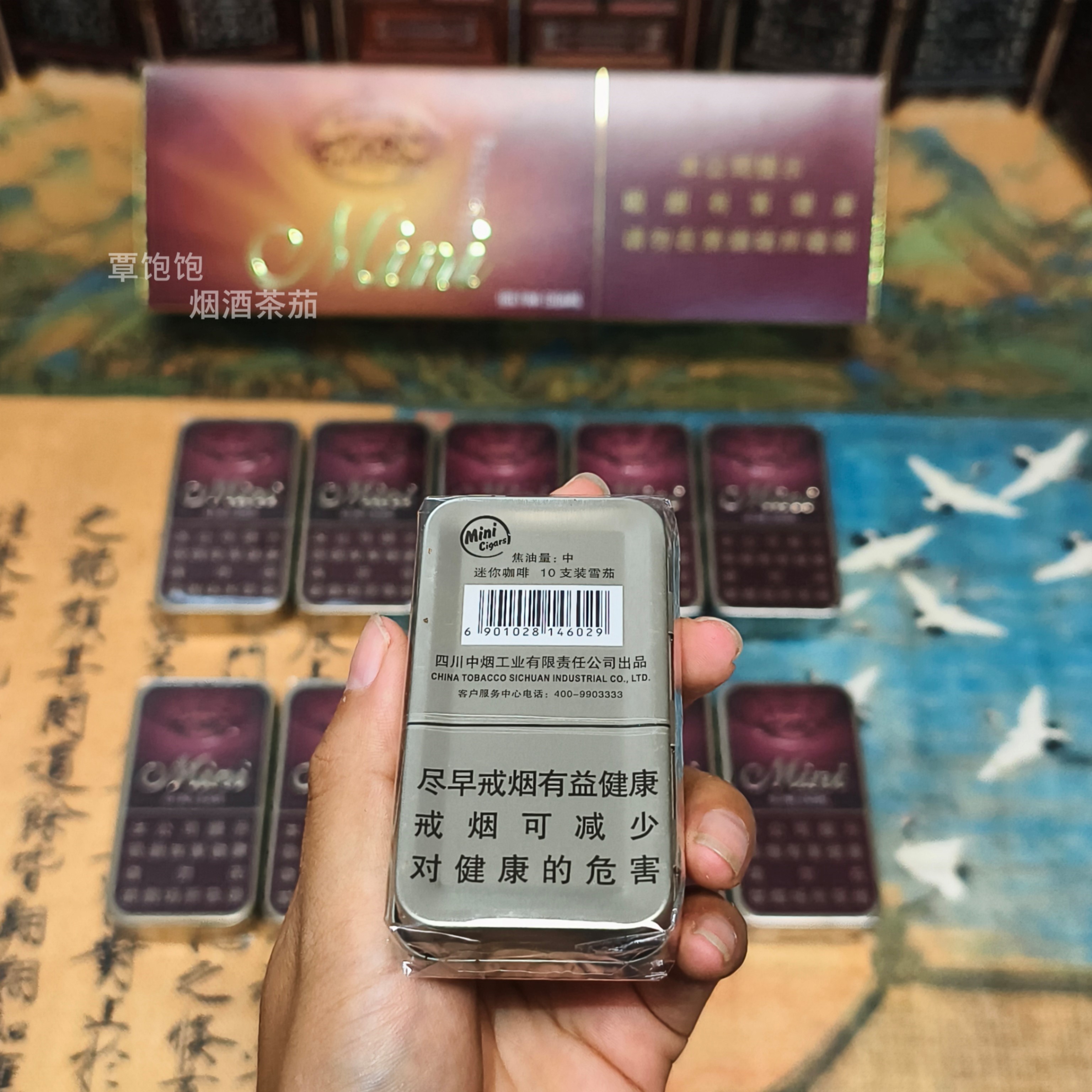 长城 • 迷你咖啡 小雪茄 类型:小雪茄 规格:1盒=10小盒*10支 焦油含量:中 长度:75mm 特点:咖啡型 风味:咖啡为主,焦糖、坚果、木香为辅 浓郁度:**** 丰富度:*** 适合新手小白,窄型铁盒包装,方便携带