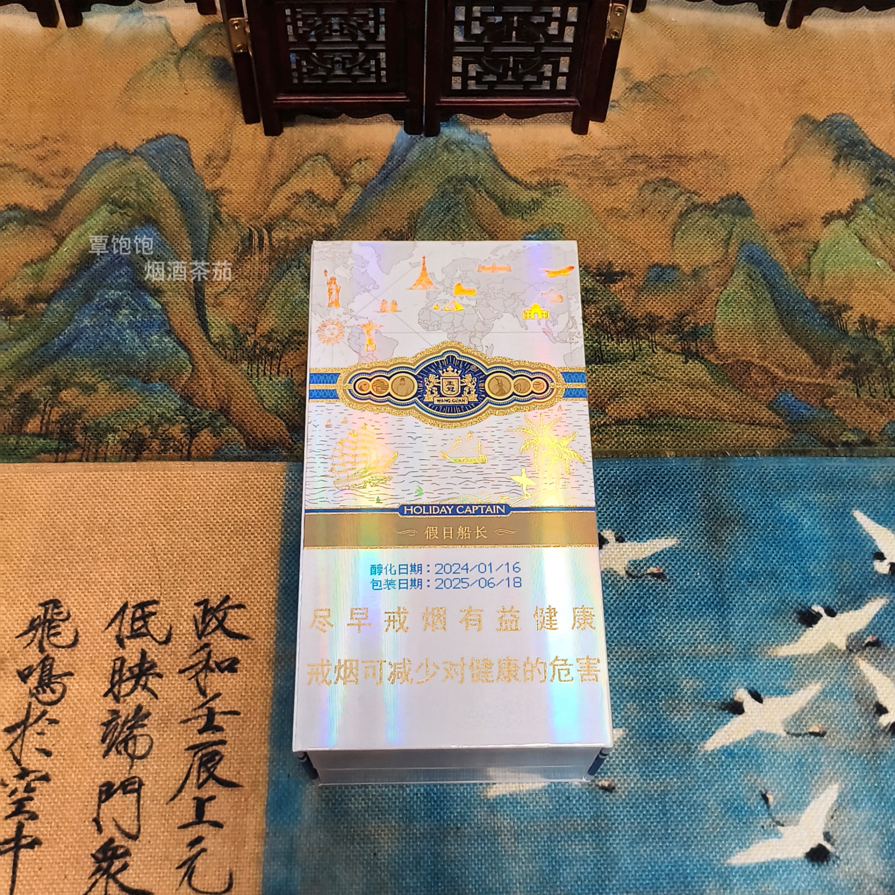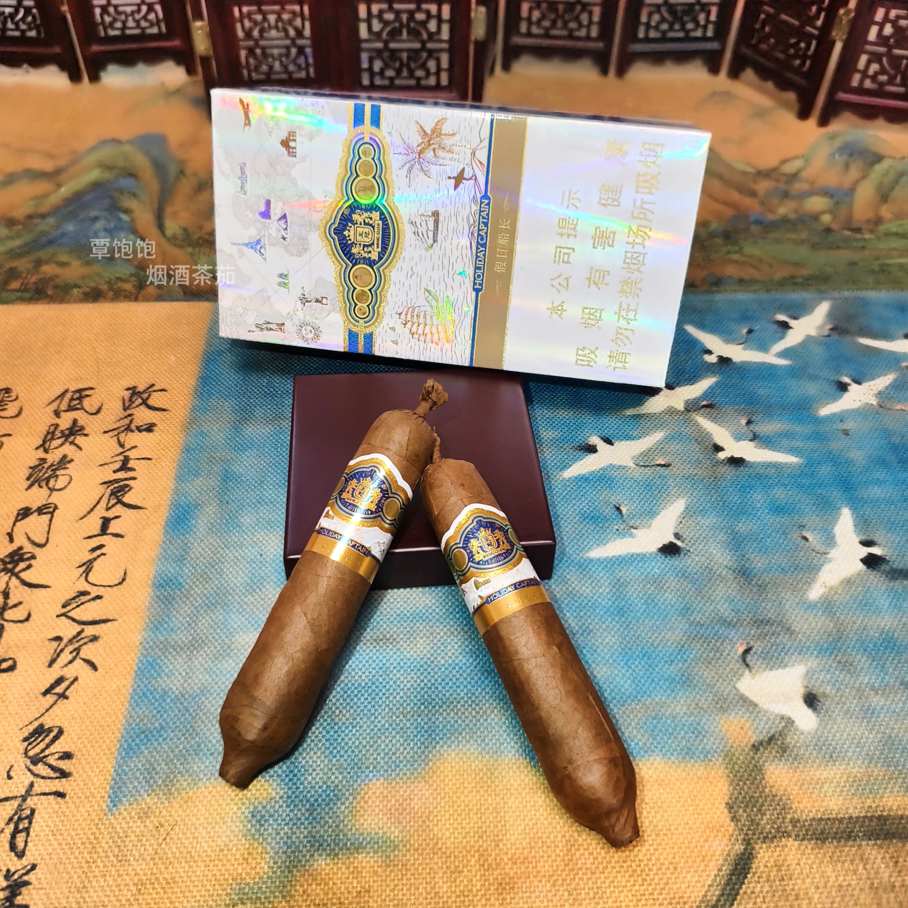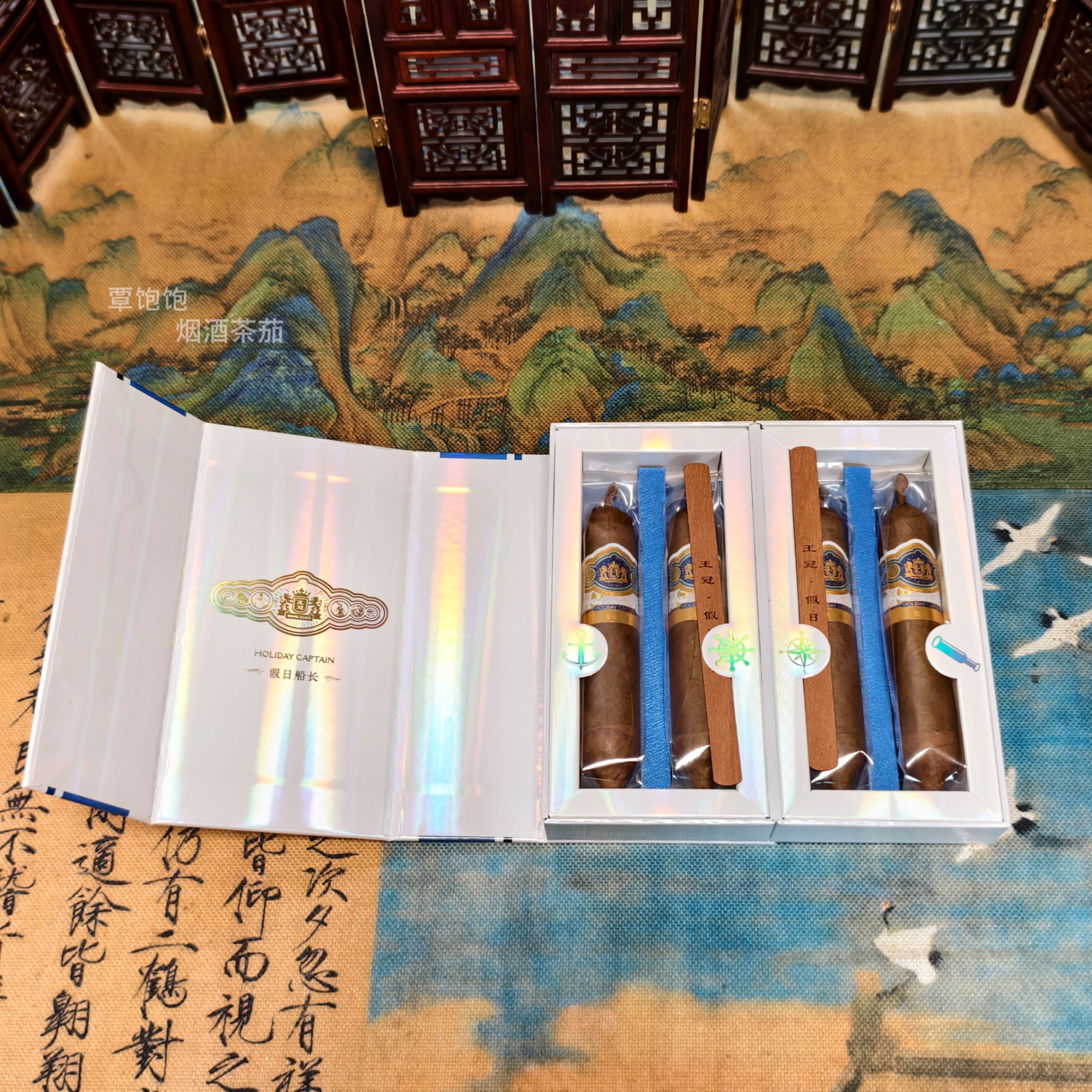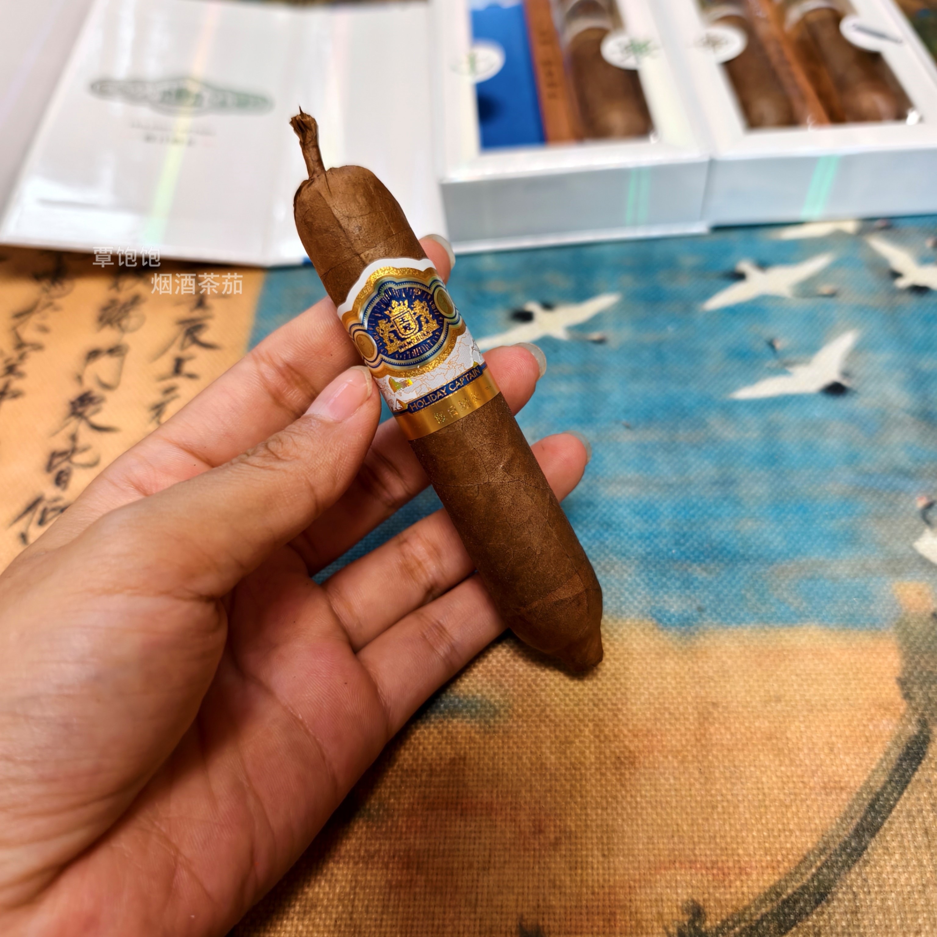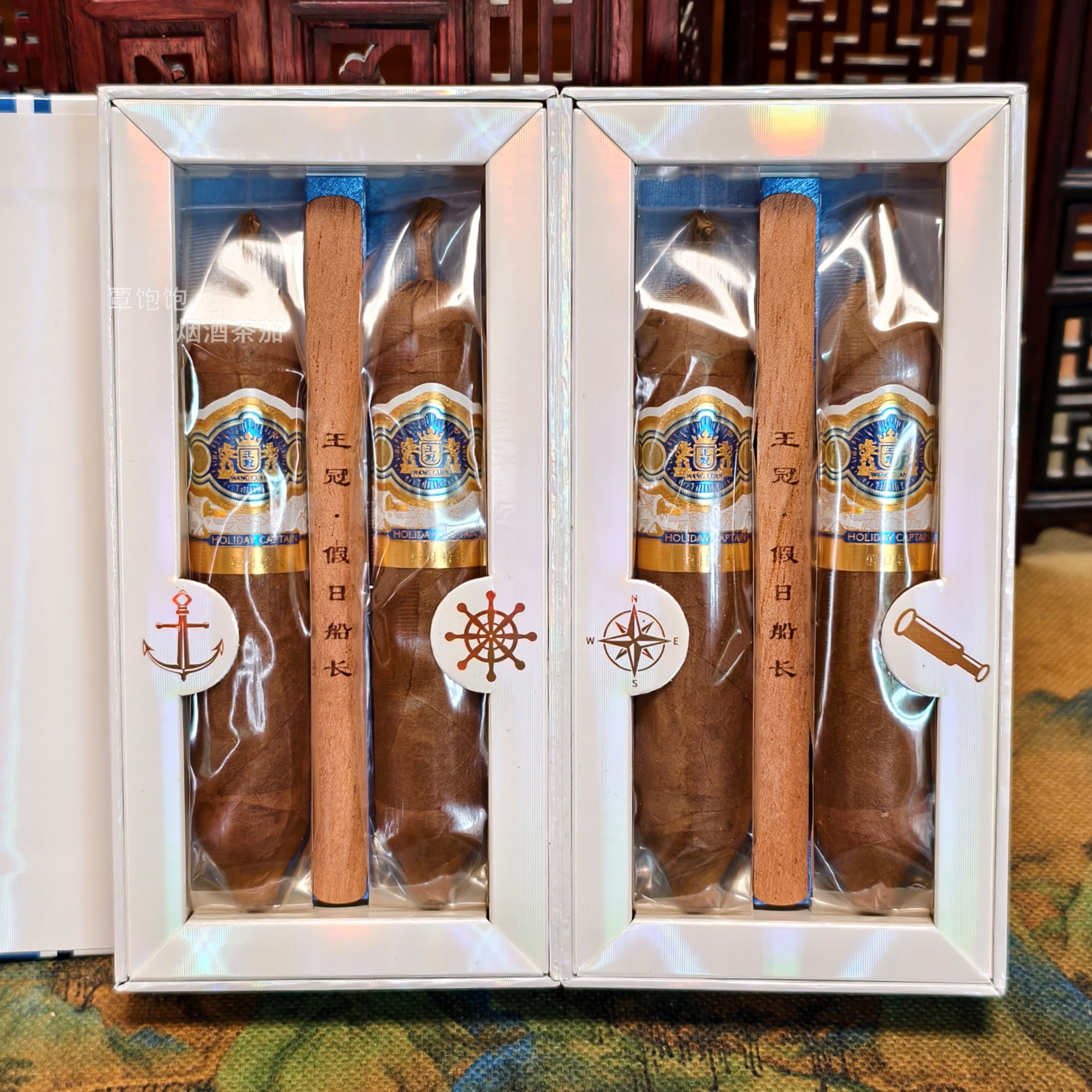 王冠 假日船长 (全叶手卷)雪茄 类型:鱼雷 规格:1盒4支 焦油含量:中 烟支规格:110*69mm 品吸时长约40分钟 风味:前段--烤甜香、可可香; 中段--木质香、豆香、皮革、奶油甜; 后段--焦糖、果核; 浓郁度:*** 丰富度:****